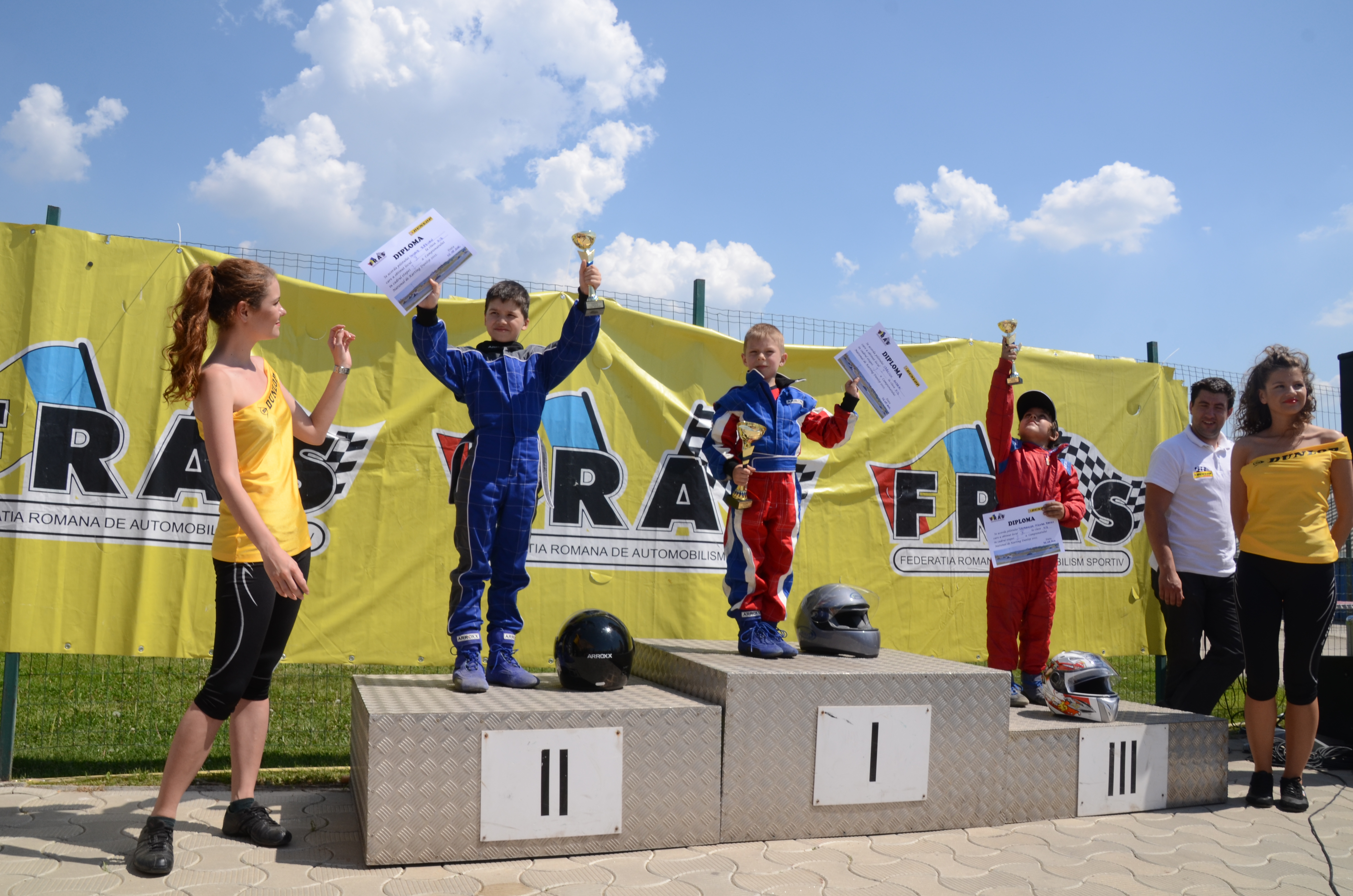 Dacă alţi copii de vârsta lui încă se mai joacă cu maşinuţele pe covor, tânărul Răzvan Onoaie, din Constanța, la numai şapte ani, a lăsat jucăriile şi a intrat pe pista de karting. Şi nu degeaba, deşi a intrat în monopost pentru prima dată în urmă cu cinci luni, acesta a reuşit performanţe incredibile, obţinând de două ori locul 2 în cadrul Campionatului Naţional de Karting (FRAS) la clasa KID, unde participă 14 copii cu vârste între 6 şi 9 ani. Răzvan este foarte încântat de sportul pe care îl practică şi visează ca în viitor să devină primul pilot de Formula 1 din România. „Pentru mine înseamnă foarte mult participarea la Campionatul National de Karting. Sper să am cât mai multe cupe în continuare”, a spus Onoaie Răzvan. Dacă unii visează la împlinirea vârstei de 18 ani pentru a putea şofa, Răzvan este un împătimit al vitezei încă de pe acum, acest lucru atrăgându-le atenţia părinţilor, care au decis să-l înscrie pe micuţ la un club de Karting. „Mie îmi place foarte mult viteza şi să conduc. Am început să merg la agrement şi le-am spus părinţilor că vreau să fac karting de perfomanță”, spune micul pilot. Deşi este un sport frumos, kartingul este şi periculos, Răzvan este precaut şi nu intră pe pistă fără casca de protecţie şi costumul de pilot. „Domnul antrenor ne-a spus să fim mereu atenţi şi să avem cască de protecţie. Kartul are o ţinută de drum foarte eficientă-mai ales după ce pista se încarcă cu gumă-, însă nu este chiar simplu să scoţi timpi competitivi”, spune tânărul. Acesta a început să practice kartingul în luna aprilie şi este înscris la clubul constănţean Tomis Kart şi este antrenat de antrenorul Gigi Băcioiu. (în foto, pe podium, locul II)